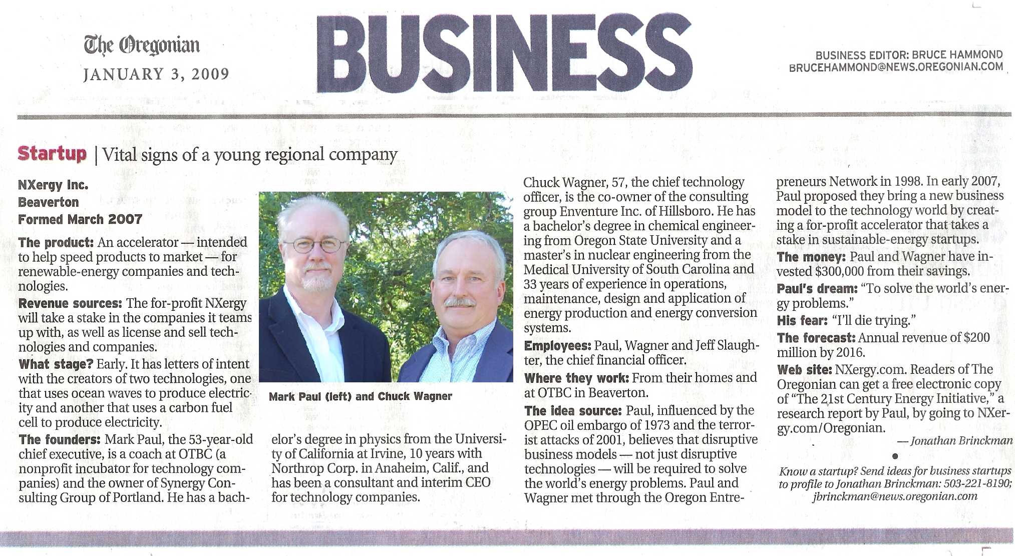 Synergy partner receives press about efforts on NXergy. January, 2009