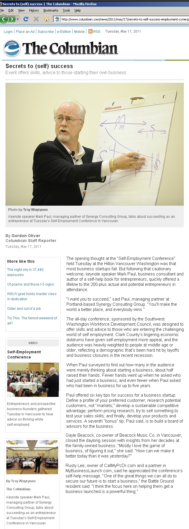 The Columbian runs an excerpt from The Entrepreneur's Survival Guide. May, 2011